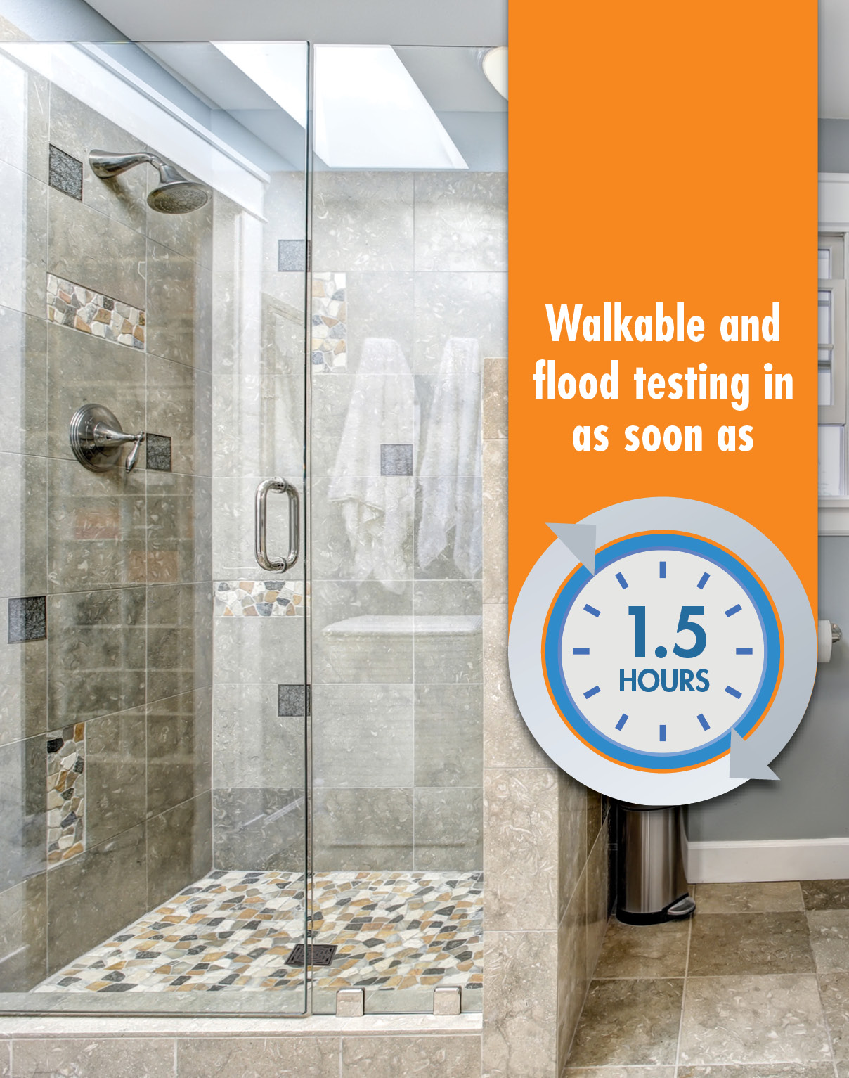 Quick Cure System 是市面上最快速的砂浆层淋浴系统!该系统由两款产品组成:Quick Cure Mortar Bed 和 HYDRO BAN® Quick Cure。结合使用这两款产品,地面仅需 1.5 小时即可行走、进行浸水试验和瓷砖铺设!