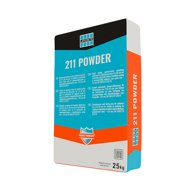 211 POWDER is a cement-based powder designed for use with various latex admixtures to produce a high performing smoothing compound or high strength adhesive for ceramic tile and stone.