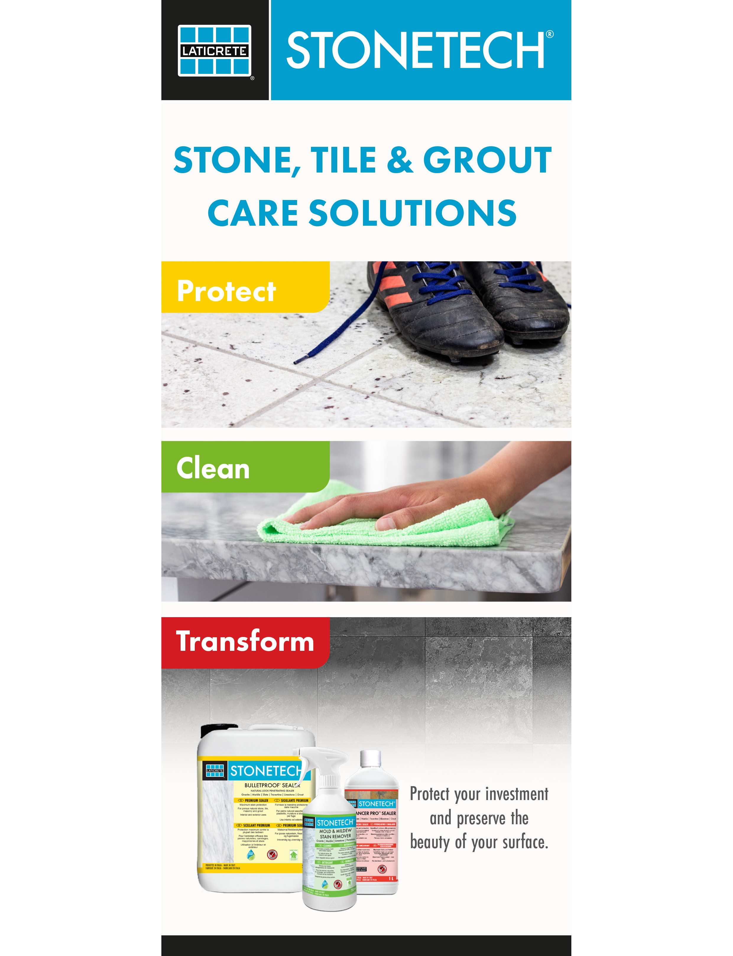 Lösungen für die Pflege von Stein, Fliesen und Fugen.