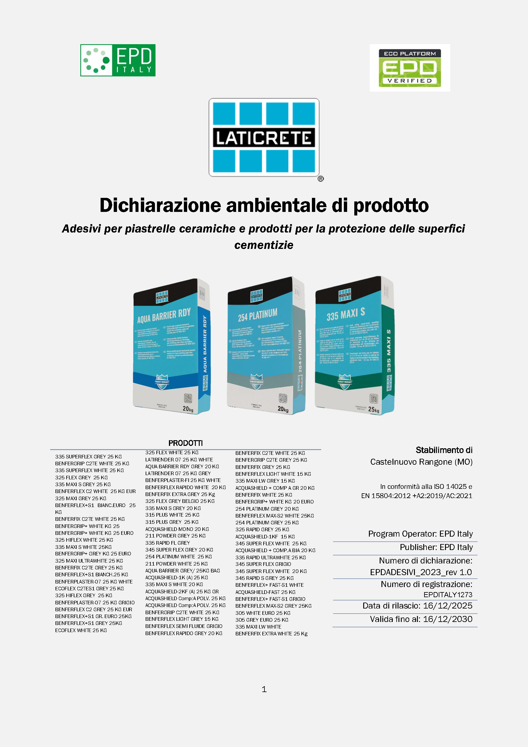 LATICRETE obtiene las EPD Environmental Product Declarations