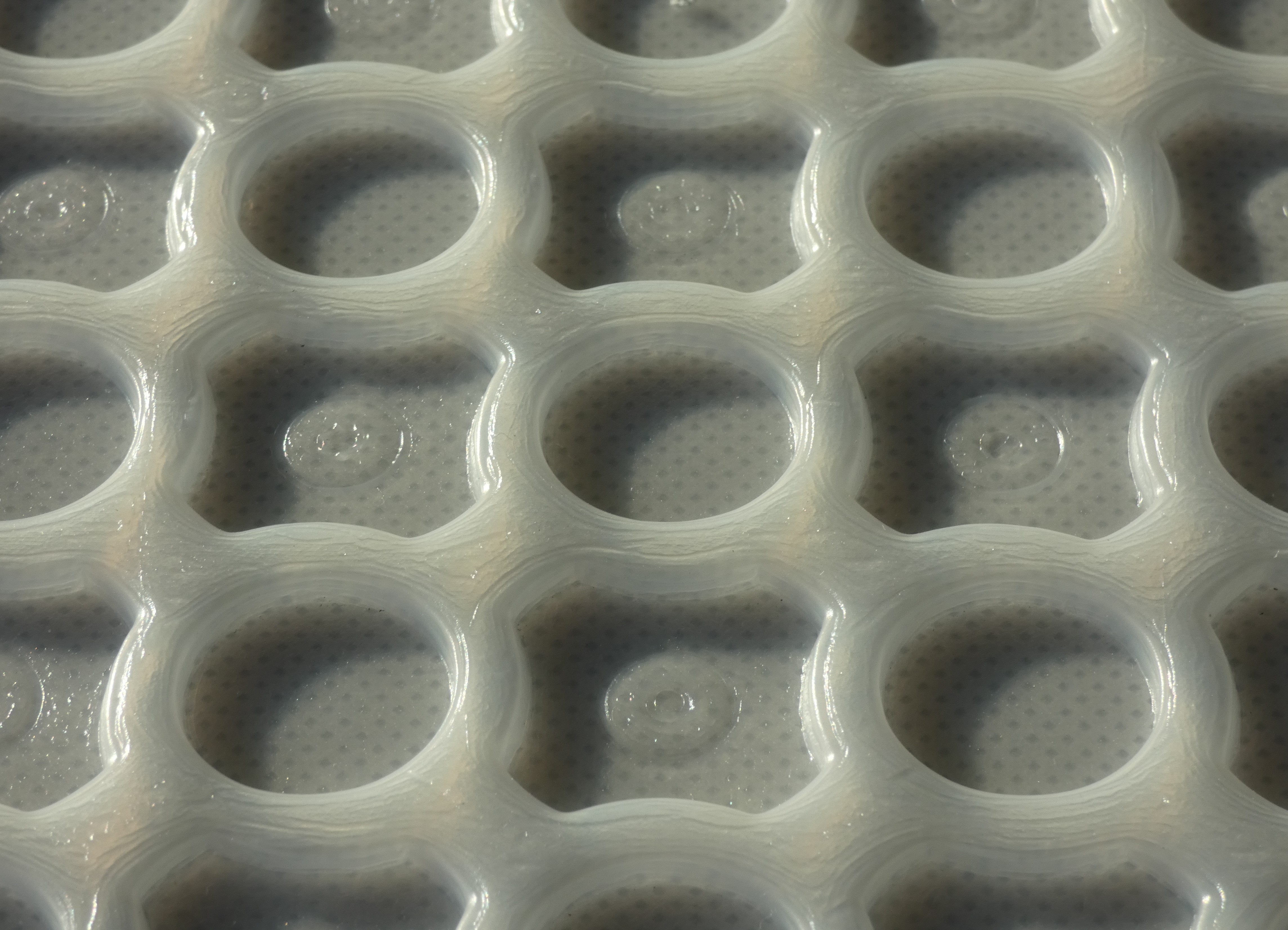 Antifracture decoupling waterproofing membrane of HDPE+PP to protect floors from movements of the substrate in commercial and residential settings, indoors and outdoors.