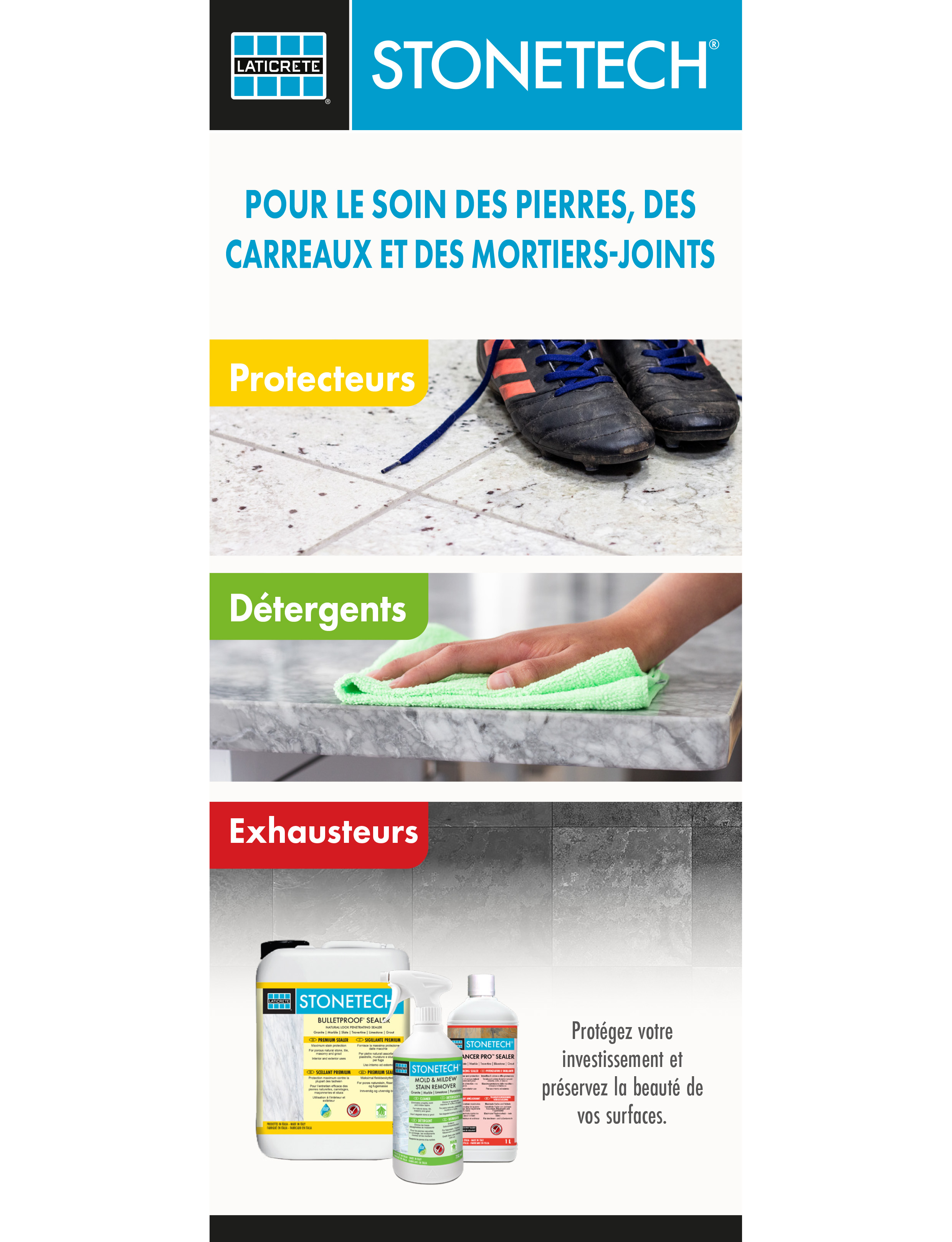 Solutions d'entretien pour la pierre, le carrelage et le coulis.