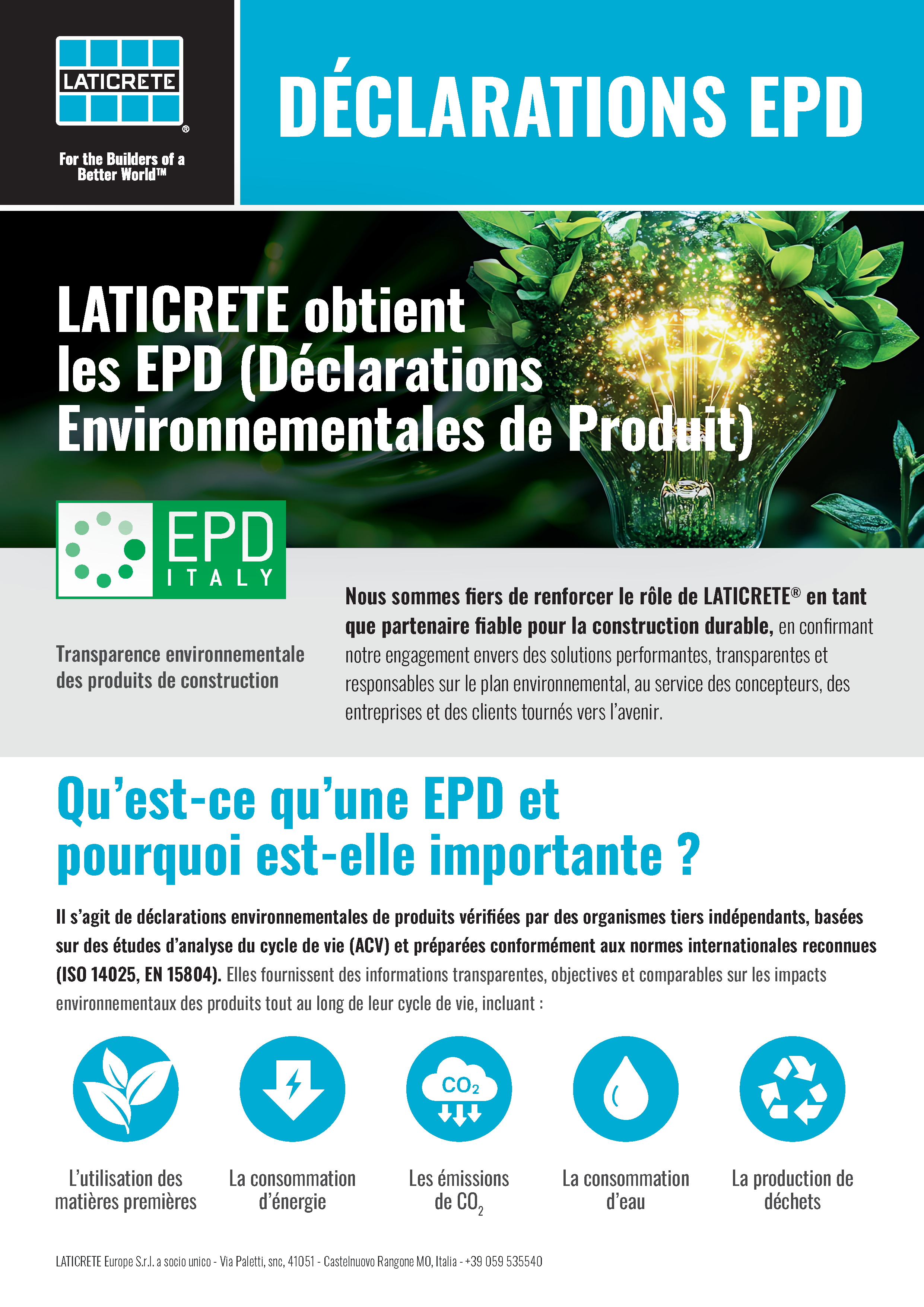 LATICRETE obtient les EPD (Déclarations Environnementales de Produit)